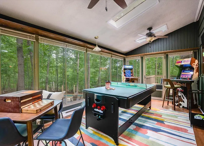 Com passeios a cavalo para tornar a sua visita mais divertida, Game Room Hot Tub Mins To Slopes Fire Pit fica a uma distância aproximada de 25 minutos a pé de Mountain Cruisers. Os hóspedes podem desfrutar de equitação e pesca nesta acomodação, localizada a uma distância de aproximadamente 10 minutos a pé de Massanutten Indoor WaterPark.